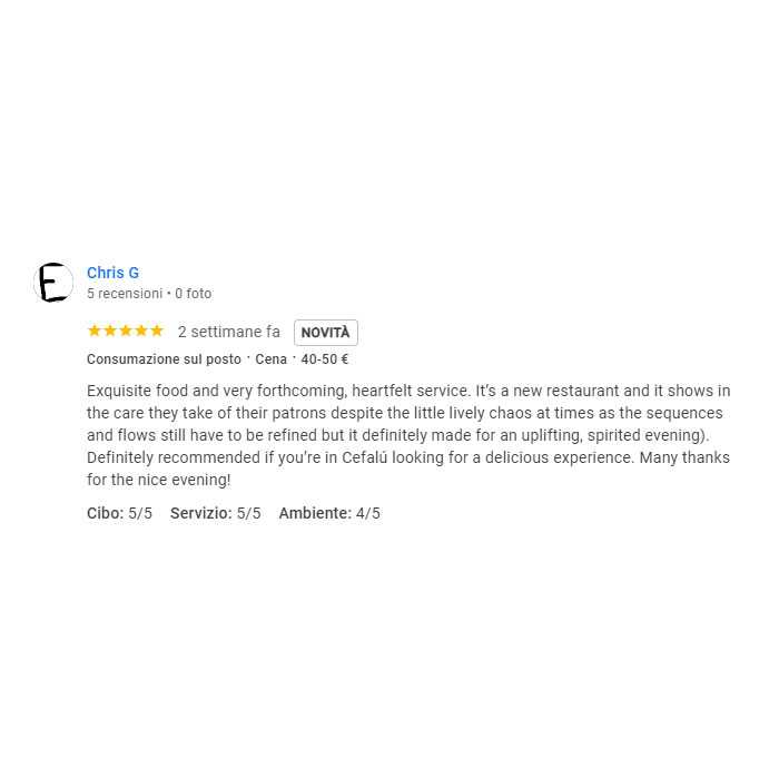 Ristorante aperto a pranzo solo il sabato e la domenica, ogni giorno aperitivo e cena.